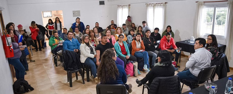 TOLHUIN.- El Gabinete Municipal, autoridades del Concejo Deliberante y docentes de Tolhuin se reunieron para tratar el pedido de entrega de terrenos a los profesionales de la educación reclamadas en la gestión anterior. Desde el Ejecutivo se analizó la urbanización planificada, pidiendo consideración a los docentes ya que es tema de agenda encontrar una solución para brindar los terrenos de demanda. Estamos trabajando en la organización social y de servicios buscando un lugar viable para que más de 90 docentes puedan acceder a su terreno propio.
