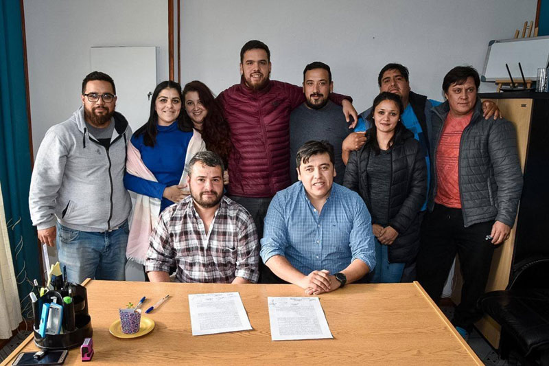 TOLHUIN.- El Intendente Daniel Harrington recibió en su despacho a los Dirigentes Gremiales de ATE Seccional Tolhuin donde se llevó a cabo la firma del acta acuerdo que contempla: