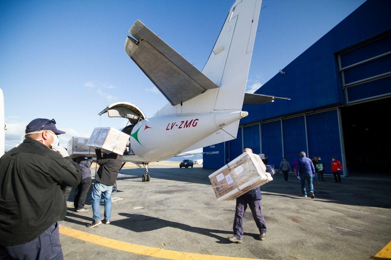 USHUAIA.- En horas de la tarde de este viernes arribó a la ciudad de Ushuaia el primer avión sanitario contratado por el Gobierno de la Provincia de Tierra del Fuego, Antártida e Islas del Atlántico Sur para abastecer a la isla de insumos médicos, medicamentos y vacunas provenientes de la ciudad de Buenos Aires.