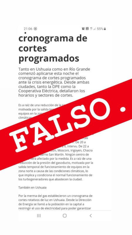 RIO GRANDE.- La Cooperativa Eléctrica de Río Grande desmiente de forma categórica la información falsa que circula acerca de la existencia de cortes programados. La Cooperativa Eléctrica garantiza el suministro del servicio a la población de Río Grande y suspendió los cortes por incumplimiento.