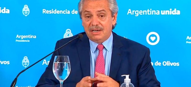 “El plan es tal cual lo propusimos al principio: que la curva de contagios sea lenta para que podamos prepararnos y atender todos los casos que se presentan; estamos aprovechando muy bien el tiempo ganado”, expresó. Acompañado del jefe de Gabinete, Santiago Cafiero y del ministro del Interior, Eduardo “Wado” De Pedro, Alberto Fernández explicó que a raíz de la pandemia de COVID-19 en el mundo, “tenemos que enfrentar el problema global de la escasez de insumos”. “Entiendan que es un momento de excepción, no tenemos que caer en el falso dilema de es la salud o la economía, una economía que cae siempre se levanta, pero una vida que termina no la levantamos más”, enfatizó. “No estamos descuidando la economía, estamos haciendo muchas cosas por la economía, no solamente garantizando dinero en los sectores más empobrecidos, que lo necesitan, sino ayudando a la pequeña y mediana empresa”, explicó.