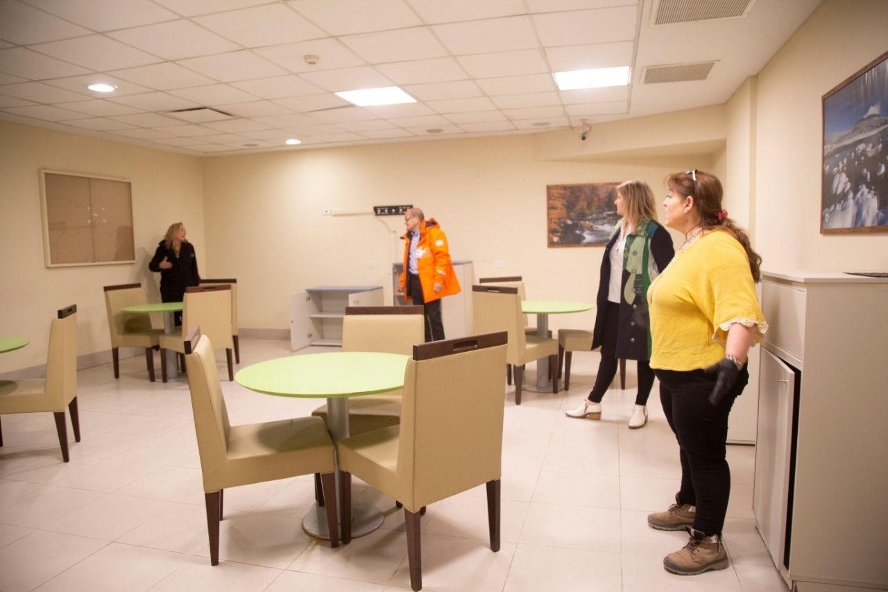 USHUAIA.- Este viernes las titulares del Misterio de Salud, de Obras y Servicios Públicos y de Gobierno, Justicia y Derechos Humanos, recorrieron las instalaciones del lugar a fin de evaluar cómo será el acondicionamiento del mismo. El Gobierno de la provincia realiza una tarea coordinada entre los Misterios de Salud, de Obras y Servicios Públicos y de Gobierno, Justicia y Derechos Humanos, para acondicionar el edifico del ex Casino de Ushuaia, y destinarlo como espacio auxiliar al sistema de salud central de esa ciudad. Al respecto, la Ministra de Gobierno, Justicia y Derechos Humanos, Adriana Chapperón explicó que “vamos trabajando por etapas desde los hospitales y los sectores privados, hasta hoteles de la ciudad, y en este caso con este espacio que hoy la provincia tiene desocupado”. En este sentido, la Ministra de Obras y Servicios Públicos, Gabriela Castillo dijo que “por indicación expresa del Gobernador, estamos avanzando para poder anticiparnos a la situación que sabemos va a llegar, y contar de nuevos espacios que sean soporte del Ministerio de Salud”. “La idea es poder generar nuevos sitios de internación y de atención, en un plan de trabajo que en principio nos permitió acondicionar los Hospitales de Ushuaia y Río Grande, luego los Centros de Atención de distintos barrios y hoy poder pensar en otra infraestructura de mayor porte para funcionar como sistema auxiliar al central” aseguró. Además de la superficie del lugar, la funcionaria destacó la ubicación estratégica que tendrían los servicios a brindar allí, y la cercanía con el Hospital Regional Ushuaia, lo cual brinda muchas posibilidades al trabajo que desarrollen los profesionales. Cabe destacar que una vez finalizada la evaluación del lugar, la cual es llevada adelante por ingenieros y equipo técnico de los Ministerios, se podrá definir cantidad de camas a instalar, así como los sectores que funcionarán, como áreas administrativas, y de servicios, entre otros.