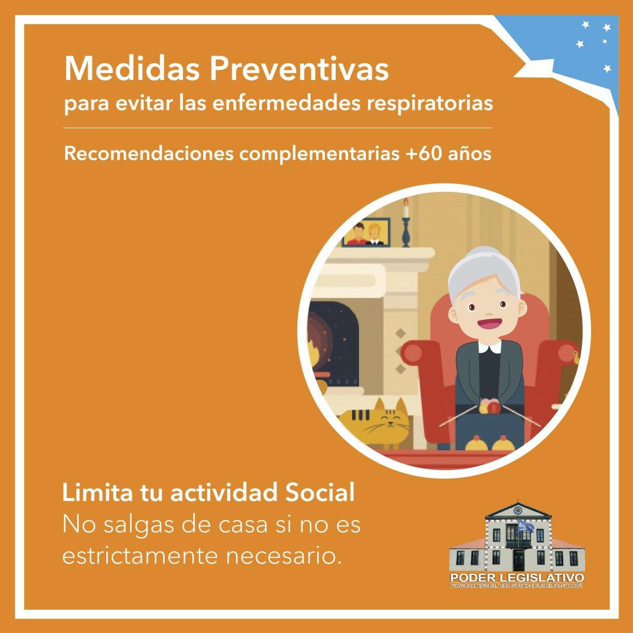 Las recomendaciones están dirigidas a ciudadanos de más de 60 años, grupo de riesgo, y otras de índole general que se suman a las que efectúa el Gobierno Provincial. #YOMEQUEDOENCASA