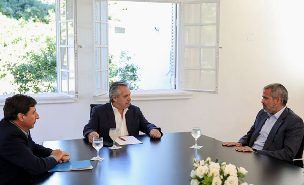 El mandatario estuvo acompañado por el ministro de Desarrollo Social, Daniel Arroyo, y por el secretario General de la Presidencia, Julio Vitobello. Durante el encuentro, hablaron sobre la posibilidad de que el Estado, que adquiere 12 millones de toneladas de alimentos para distribuir, pueda comprarlos sin intermediarios y directamente a los productores.
