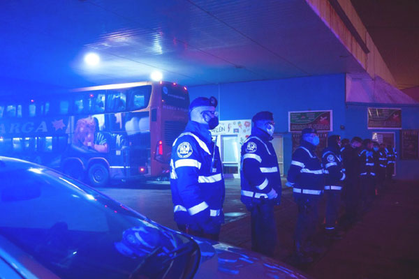 GOBIERNO MONTÓ UN OPERATIVO DE SEGURIDAD PARA RECIBIR AL PRIMER COLECTIVO CON FUEGUINOS VARADOS