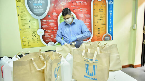 USHUAIA.- El jefe de Gabinete de la Municipalidad de Ushuaia, David Ferreyra, confirmó que continúan con el armado de los kits sanitizantes que son entregados a los comercios que van abriendo sus puertas desde comienzos de esta semana. “Tal como nos pidió el intendente Walter Vuoto, estamos acompañando de manera efectiva en esta apertura con los promotores de salud, alcanzándoles los kits y contándoles también todas las acciones que venimos llevando adelante desde la Municipalidad a partir del 10 de marzo, en el inicio de la pandemia”, expresó Ferreyra.