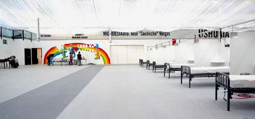 USHUAIA.- La Secretaría de Cultura y Educación de la Municipalidad de Ushuaia, desde el Programa de Muralismo, inició este lunes una obra mural dentro del microestadio José “Cochocho” Vargas que integra el Polo Sanitario. Se realiza como parte de la campaña “Contagiando Sonrisas” que convocó a niñas y niños de la ciudad a dibujar arco iris acompañados de mensajes positivos y de aliento para el personal sanitario dedicado a la lucha contra la pandemia y a posibles pacientes internados en el lugar. El mural será realizado por los artistas locales, María Laura Llovera, Rodrigo Crespo y Belén Molina, subsecretaria de Cultura y Educación de la ciudad. También será un homenaje a todas y todos los profesionales e integrantes del sistema de Salud y participantes de distintos sectores que tienen roles importantes en la atención de pacientes y prevención del virus.