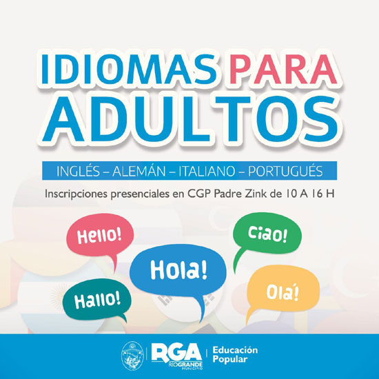 RIO GRANDE.-    El Municipio de Río Grande informa a los vecinos y vecinas que, desde este lunes 6 hasta el 10 de marzo, inclusive, se encuentran abiertas las inscripciones para quienes quieran ser parte de los cursos: italiano, portugués, alemán e inglés.