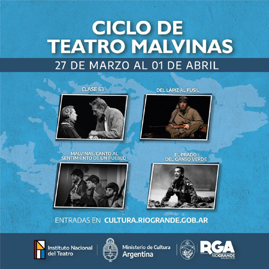 El Ciclo “Teatro Malvinas” es una propuesta que tiene como objetivo visibilizar, desde el arte y el teatro, lo sucedido durante el conflicto bélico de 1982. La misma es organizada por el Ministerio de Cultura de la Nación, a través del Instituto Nacional del Teatro, y el Municipio de Río Grande.