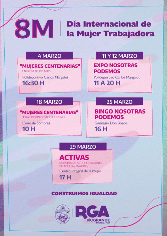 La Secretaría de la Mujer, Género y Diversidad del Municipio de Río Grande, presentó las propuestas por el Mes de la Mujer Trabajadora, cuyo eslogan este año será “Construimos Igualdad”.