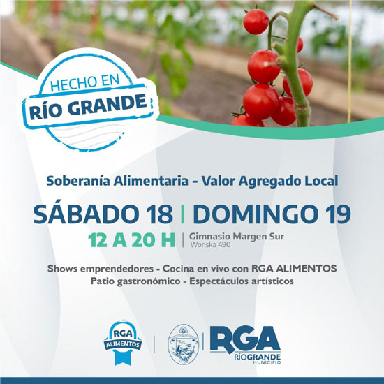 RIO GRANDE.-   El Municipio se prepara para presentar el 18 y 19 de marzo en el Gimnasio de la Zona Sur, la primera edición de la feria “Hecho en Río Grande” y el lanzamiento en el rubro de hortalizas, de la marca “RGA Alimentos”, con la venta de tomates frescos y agroecológicos producidos en nuestra ciudad.