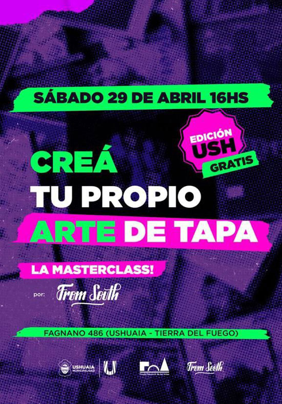 USHUAIA.- La Secretaría de Cultura y Educación de la Municipalidad de Ushuaia realizará el dictado de la masterclass “Creá tu Propio Arte de Tapa”, donde la diseñadora gráfica e ilustradora From South brindará conceptos teóricos sobre las portadas de discos. La misma será el día sábado 29 de abril a las 16:00 horas en el espacio de Talleres Culturales municipales ubicados en Fagnano N° 486.