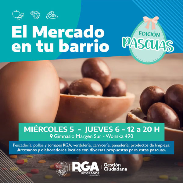 RIO GRANDE.- Con motivo de la celebración de Pascuas, el Municipio prepara una Edición Especial del “Mercado en tu Barrio”, siendo el Polideportivo de la Zona Sur el epicentro de reunión de artesanos, productores y artistas riograndenses que esperarán la visita de vecinos y vecinas para ofrecerles productos con altos estándares de calidad y hechos en Río Grande.
