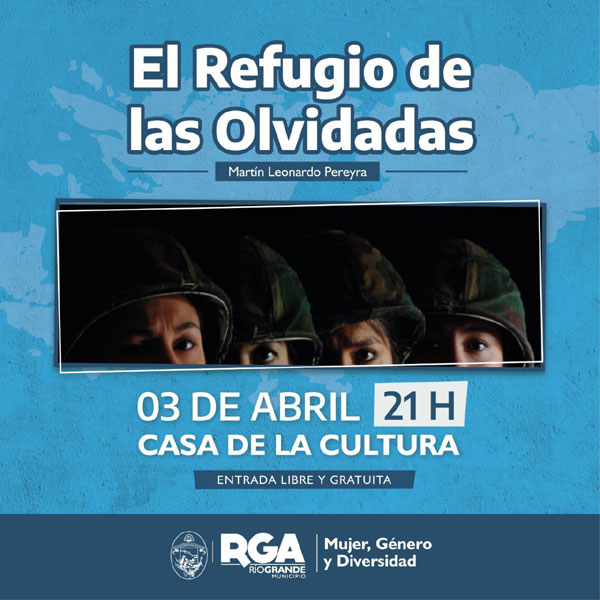 RIO GRANDE.-  La función tendrá lugar este lunes 3 de abril en la Casa de la Cultura, a las 21 horas. La entrada es libre y gratuita para todos los vecinos y vecinas de la ciudad. Esta propuesta teatral es organizada por la Secretaría de la Mujer, Género y Diversidad, y se enmarca en el 41° Aniversario de la Gesta de Malvinas.