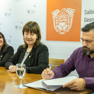 USHUAIA.- En el salón Malvinas de la casa de Gobierno, se llevó adelante la firma del convenio de cooperación entre los Ministerios de Trabajo y Empleo y Desarrollo Humano que busca capacitar y formar a referentes de las organizaciones sociales. El acto fue presidido por la vicegobernadora Mónica Urquiza junto a la titular de la cartera laboral, Karina Fernández y el responsable del área social, Marcelo Maciel.