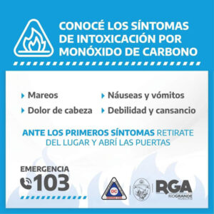 Finalmente, desde el área recomendaron que, ante la sospecha de intoxicación por monóxido de carbono, se debe retirar a los afectados del ambiente contaminado y llevarlos a un sitio donde puedan respirar aire limpio. Luego, comunicarse con algún centro de urgencias o bien acercarse al Centro de Salud más cercano.