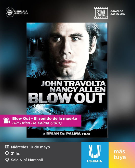 USHUAIA.-   La Secretaría de Cultura y Educación de la Municipalidad de Ushuaia llevará adelante este miércoles 10 de mayo a las 21:00 horas en la Sala Niní Marshall la proyección del film “Blow Out/El sonido de la muerte», parte del programa de “Cine Nerd” que durante el mes de mayo presentará diversas películas del director Brian De Palma de la década de los 80’s.