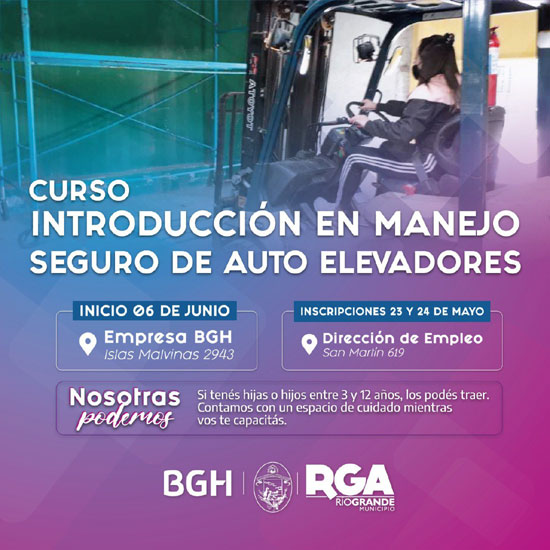 El dictado de esta segunda edición del curso introductorio de Manejo de Auto elevadores iniciará el próximo 06 de junio en la planta industrial BGH -ubicada en Islas Malvinas 2943-. En el lugar habrá un espacio de cuidados para las infancias, con el propósito de garantizar el cursado de todas aquellas personas que asistan con niños y/o niñas a cargo.