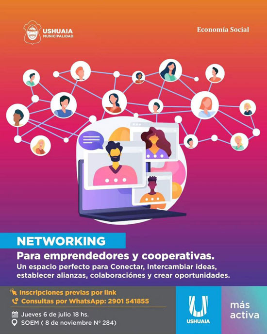 USHUAIA.- La Secretaría de Políticas Sociales, Sanitarias y Derechos Humanos de la Municipalidad de Ushuaia, a través del área de Economía Social, llevará adelante una jornada de networking destinada a emprendedores y cooperativas de la ciudad.