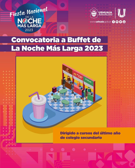 USHUAIA.- La Municipalidad de Ushuaia, a través de la Secretaría de Cultura y Educación, lanzó la inscripción dirigida a cursos del último año de colegios secundarios para el servicio de buffet de la “Noche Más Larga”. Las y los interesados podrán inscribirse en el siguiente link: https://acortar.link/TZCDeY .