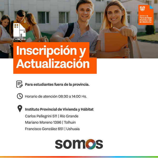 PROVINCIAL.- El Instituto Provincial de Vivienda y Hábitat comunica que se encuentran habilitado el período de inscripción y actualización de legajos para estudiantes que se encuentren cursando fuera de la provincia.
