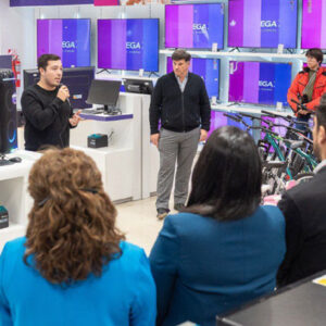 Estuvieron presentes en la inauguración: el gerente de Ventas de la firma, Germán Lenti; el secretario de Gestión Ciudadana, Gonzalo Ferro; la secretaria de la Mujer, Género y Diversidad, Alejandra Arce; el subsecretario de Innovación Pública, Jonatan Bogado; la directora de Comercio e Industria, Valeria Sánchez; funcionarios provinciales, el presidente de la Cámara de Comercio de Río Grande, José Luis Iglesias, como así también trabajadores y trabajadoras de Frávega.