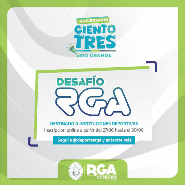 RIO GRANDE.- En el marco del 103° Aniversario de Río Grande, la Subsecretaría de Deportes invita a los clubes e instituciones deportivas a participar de la competencia «Desafío RGA»: una actividad dirigida a toda la comunidad deportiva riograndense.