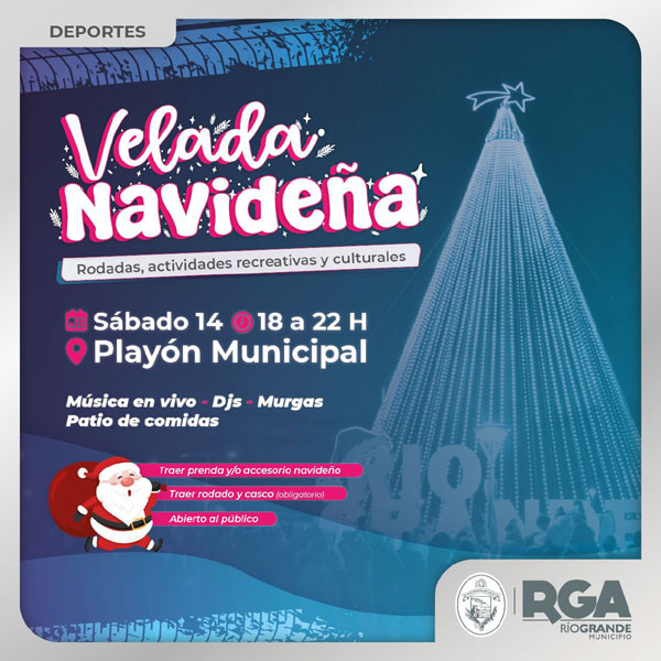 RIO GRANDE.-    El Municipio de Río Grande invita a toda la comunidad a continuar celebrando la víspera de Navidad con la Velada Navideña, un evento abierto a todo el público que se llevará a cabo el próximo sábado 14 de 18:00 a 22:00 horas, en el playón municipal ubicado en Elcano y 11 de Julio.