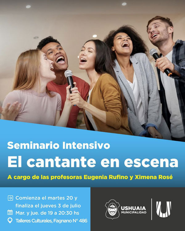 USHUAIA.- La Secretaría de Cultura y Educación de la Municipalidad de Ushuaia informa a vecinos y vecinas que se encuentran abiertas las inscripciones al Seminario Intensivo “El cantante en escena” a cargo de las profesoras Eugenia Rufino y Ximena Rosé.
