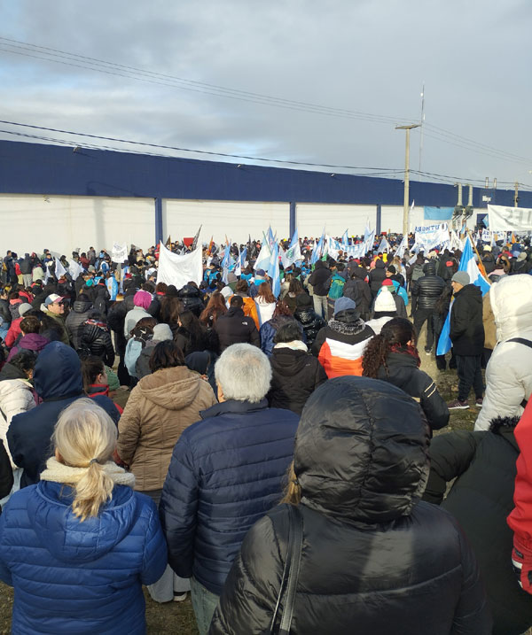 El acto contó con la participación de todo el espectro sindical de la ciudad, destacándose la presencia del dirigente ferroviario nacional Rubén «Pollo» Sobrero, quien transmitió el respaldo del movimiento obrero de todo el país a la lucha que se lleva adelante en Tierra del Fuego.