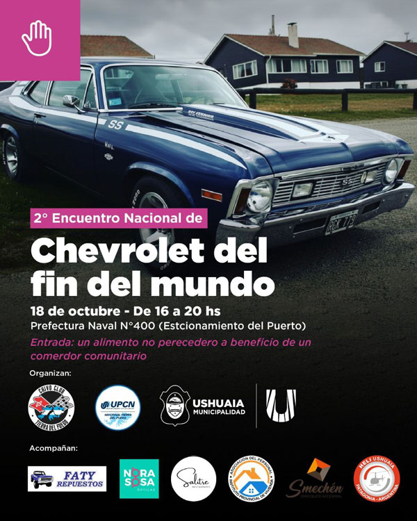 UHSUAIA.-    En el marco del 141° aniversario de Ushuaia, el sábado 18 de octubre se llevará adelante el “2° Encuentro Nacional de Chevrolet del Fin del Mundo”, con la exhibición de 100 autos clásicos de la marca que llegarán en caravana a la ciudad para sumarse a los vehículos locales.    La Municipalidad de Ushuaia acompaña este encuentro organizado por el “Chivo Club de Tierra del Fuego” y UPCN.