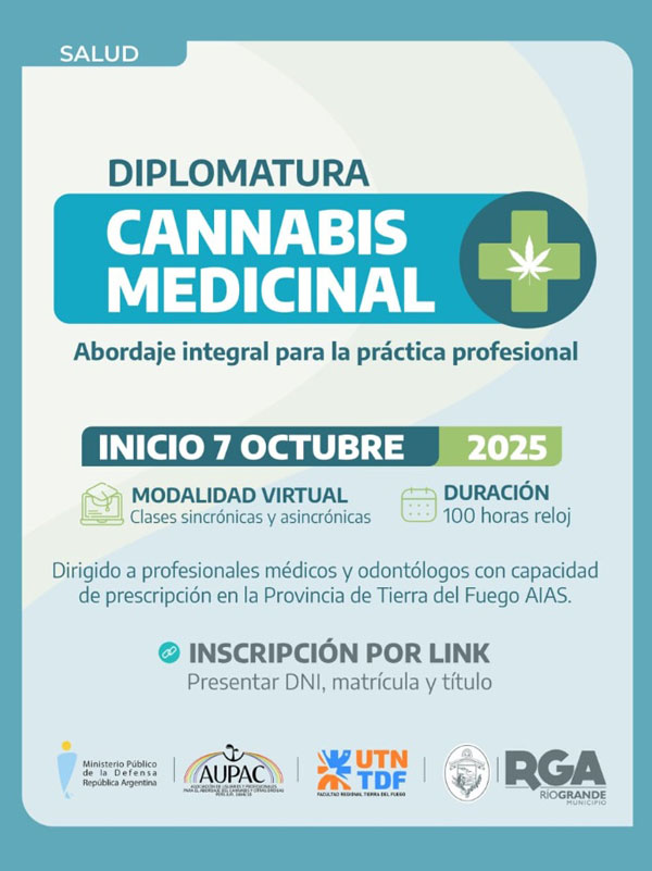 Atentos a esta demanda, el Municipio de Río Grande junto al Ministerio Público de la Defensa de la República Argentina, la Facultad Regional Tierra del Fuego de la Universidad Tecnológica Nacional (UTN) y la Asociación de Usuaries y Profesionales para el Abordaje del Cannabis y otras Drogas (AUPAC) llevarán adelante la Diplomatura Técnico Profesional en Cannabis Medicinal. La misma apunta a capacitar a médicos y odontólogos con título de grado brindándoles las herramientas necesarias para prescribir, dispensar y acompañar a pacientes de forma idónea, segura y ética. Dicho programa se ­alinea con la Ley Nacional 27.350 y su reglamentación.