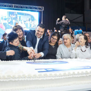 USHUAIA.- En el marco del 141° Aniversario de Ushuaia, la Municipalidad de Ushuaia agasajó a vecinos y vecinas en la tradicional Cena de Antiguos Pobladores realizada en el Microestadio José “Cochocho” Vargas. Compartiendo junto a las y los vecinos, estuvieron presentes el intendente de la ciudad, Walter Vuoto, la vicegobernadora de la Provincia, Mónica Urquiza, la senadora y candidata a este mismo cargo Cristina Cándida López, Paola Mancilla, candidata a diputada, la diputada Carolina Yutrovic, legisladores, las y los concejales Vladimir Espeche, Yésica Garay, Nicolás Pelloli, Analía Escalante, Gabriel De la Vega, Diana Freiberger y Fernando Oyarzún, funcionarios municipales, representantes de las Fuerzas Armadas, de Seguridad e instituciones centenarias. Durante la noche, se presentó a la flamante embajadora de Ushuaia, la periodista y escritora Carla Fulgenzi, así como el nuevo embajador, Luis “Chino” Vivar, destacado por su rol como jefe de Operaciones de Defensa Civil Municipal.