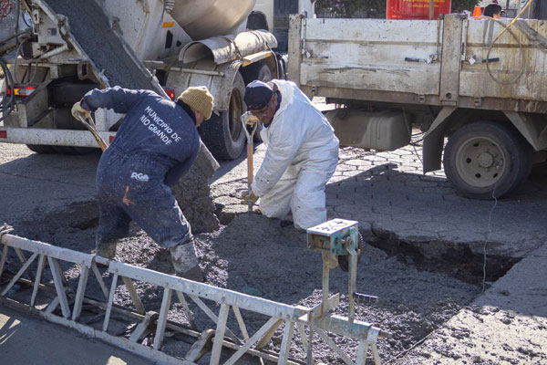 RIO GRANDE.- El Municipio continúa realizando trabajos de mantenimiento y bacheo en distintos puntos de la ciudad en pos de garantizar mayor conectividad y responder a las necesidades de los vecinos y vecinas. La administración responsable de los recursos por parte de la gestión del intendente Martín Perez, sumado al esfuerzo diario de sus trabajadores, permite avanzar en la mejora permanente de la infraestructura vial de Río Grande.