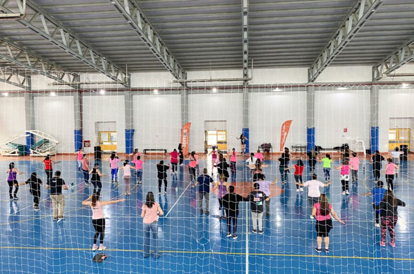 La actividad comenzó con la energía contagiosa de las instructoras Carolina Gallardo y Florencia González, quienes lideraron las coreografías de zumba, llenando el espacio de ritmo y movimiento. Luego, en un cambio de clima, la profesora Cintia Oyarzo guió a todas las participantes en una práctica de yoga, promoviendo la relajación y la conexión cuerpo-mente.