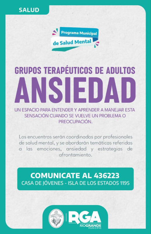 RIO GRANDE.- Los mismos están dirigidos a vecinos y vecinas mayores desde los 18 hasta los 59 años, así como a adultos mayores, a partir de los 60 años y se desarrollarán en Isla de los Estados 1195. El espacio busca acompañar a la comunidad para entender y aprender a manejar esta sensación cuando se vuelve un problema o preocupación.