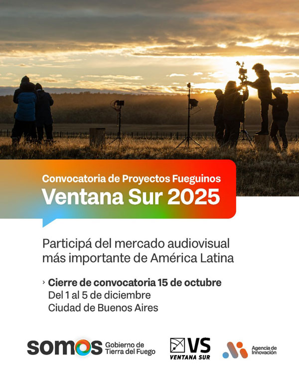 PROVINCIAL.- La Secretaría de Cultura de Tierra del Fuego, con el acompañamiento del Consejo Federal de Inversiones (CFI) y las Provincias Unidas (Jujuy, Santa Fe, Mendoza, Santiago del Estero, Río Negro, Neuquén, Salta, Misiones y Buenos Aires), abrió la convocatoria para seleccionar tres proyectos audiovisuales fueguinos que participarán en Ventana Sur 2025, el mercado de contenidos audiovisuales más importante de América Latina.
