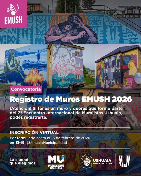 Para conocer más sobre el Registro de Muros y el Encuentro Internacional de Muralistas en el Fin del Mundo “EMUSH 2026”, las y los interesados podrán visitar las redes de la Municipalidad de Ushuaia y la Secretaría de Cultura y Educación en @UshuaiaMunicipalidad y @culturayeducacionush respectivamente.