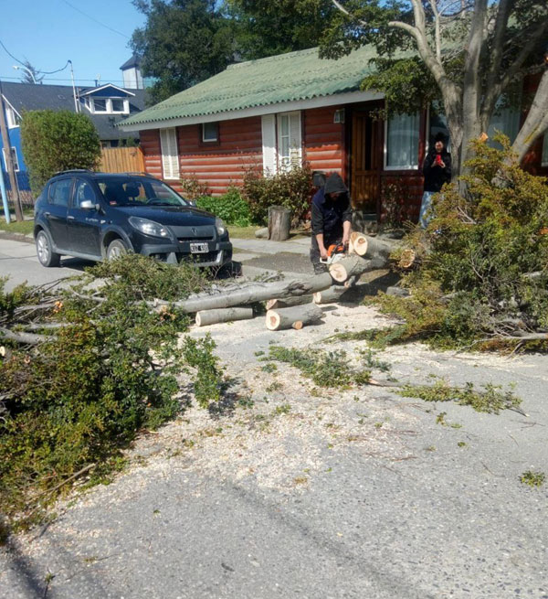 USHUAIA.-    La Municipalidad de Ushuaia, a través de la Secretaría de Medio Ambiente y Desarrollo Sustentable, intervino durante la mañana de este domingo en distintas situaciones ocasionadas por la caída de árboles, producto del fuerte temporal de vientos registrado en la madrugada y las primeras horas del día.
