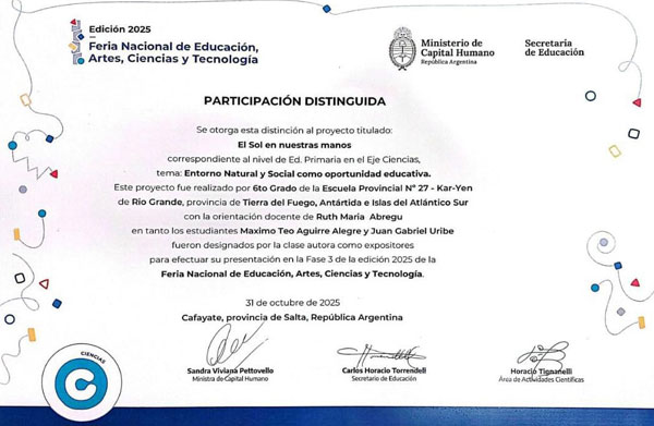 La concejal cerró su mensaje subrayando el orgullo que “representa para la comunidad de Río Grande contar con jóvenes que se destacan en el ámbito científico”, dijo, al tiempo que agregó que “Río Grande está orgullosa de ustedes. Sigamos impulsando la ciencia, la innovación y las oportunidades para nuestros estudiantes, porque ahí está la base del futuro fueguino”.