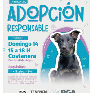 RIO GRANDE.- El Municipio de Río Grande, a través de la Secretaría de Gestión Ciudadana, invita a la comunidad a participar de una nueva Jornada de Adopción Responsable, que tendrá lugar este domingo 14 de diciembre, de 15 a 18 horas, en la Costanera, frente a la Casa de la Cultura.