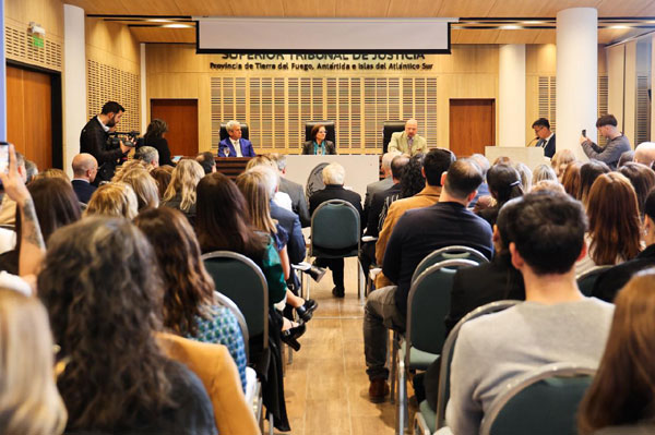 USHUAIA.- El Secretario de Justicia de la provincia, Gonzalo Carrillo, junto a la Presidenta del Superior Tribunal de Justicia, María del Carmen Battaini encabezaron las Jornadas en el marco de los 10 años de la Sanción del Código Civil y Comercial de la Nación. Participó la Vicegobernadora Mónica Urquiza, autoridades de diversas áreas del Estado y profesionales del sector.