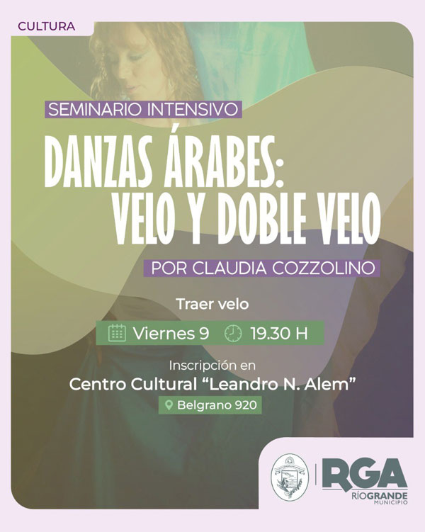 RIO GRANDE.- El Municipio de Río Grande, a través de la Subsecretaría de Cultura, invita a la comunidad a participar del Seminario Intensivo de Danzas Árabes: Velo y Doble Velo, una propuesta artística destinada a quienes deseen profundizar y perfeccionar técnicas de esta disciplina.