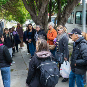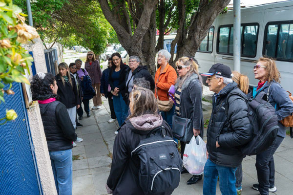 La jornada tuvo su punto de encuentro en el Centro de Bienestar “Papa Francisco”, desde donde las y los participantes iniciaron una caminata hasta la Casa de Pioneros, un espacio con una valiosa historia ligada a los orígenes de la comunidad de Río Grande. Allí fueron recibidos por Susana y Rubén, anfitriones del lugar, quienes acompañaron el recorrido y compartieron la historia familiar como el valor patrimonial del lugar.