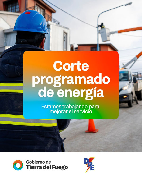 USHUAIA.- La Dirección Provincial de Energía informa a la comunidad que el día viernes 27 de marzo se llevará adelante un corte programado del servicio eléctrico, con el objetivo de realizar trabajos de modificación en la traza del cable aéreo de media tensión, en el marco de la reconfiguración de la calle Costa de los Yámanas.