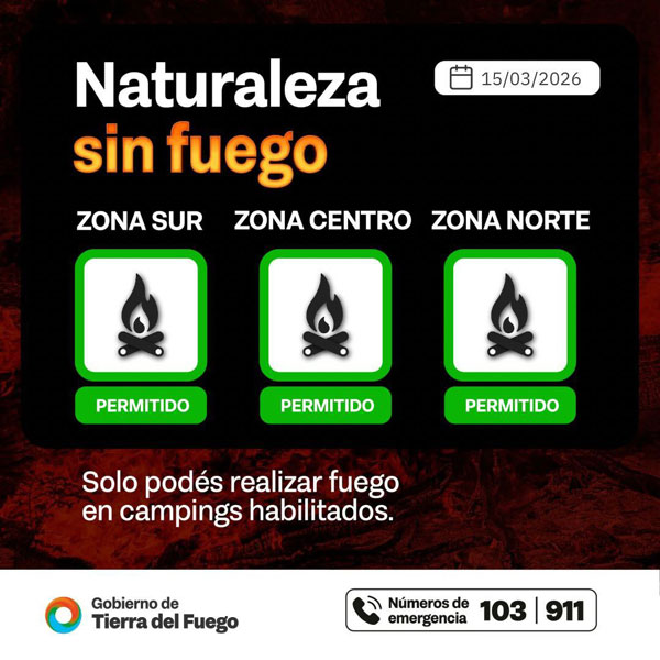 PROVINCIAL.-     El día de hoy, en las ciudades de Río Grande, Tolhuin y Ushuaia, está permitido hacer fuego únicamente en campings habilitados.