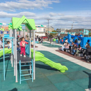 La apertura de este espacio se dio en el marco de la jornada “Tardes de Barrio”, donde las infancias pudieron disfrutar de los nuevos juegos, de castillos inflables y distintas propuestas recreativas.
