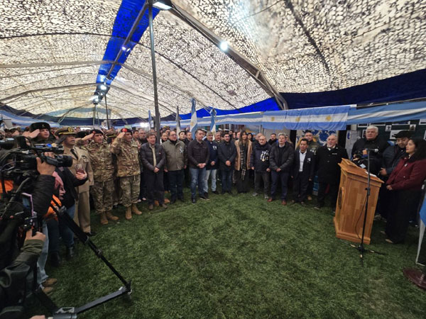 RÍO GRANDE.- En el mediodía de este miércoles los concejales Jonatan Bogado, Verónica Martínez, Federico Runin y Maximiliano Ybars participaron por última vez de la inauguración de la Carpa de la Dignidad tal cual se la conoce y es el preludio a la inauguración de un edificio permanente que reemplazará la estructura tradicional, marcando un hito histórico al ser la última vez que se monta tras 32 años de vigilias. Cabe remarcar que la carpa actualmente se ubica sobre el bulevar de la avenida Héroes de Malvinas, esperando la conmemoración de la Vigilia el próximo miércoles y la realización del acto oficial del día jueves y el posterior desfile cívico militar.