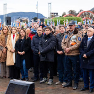 USHUAIA.- El Gobernador de Tierra del Fuego AIAS, Gustavo Melella, encabezó el Acto Central por el “44° Aniversario del Día del Veterano y de los Caídos en la Guerra de Malvinas” que se desarrolló en la Plaza Islas Malvinas de la ciudad de Ushuaia. Lo hizo junto al presidente del Centro de Excombatientes de Malvinas en Ushuaia, Juan Carlos Parodi, al Gobernador de la Provincia de Buenos Aires, Axel Kicillof, al Gobernador de la Provincia de La Rioja, Ricardo Quintela, al Presidente Provisional del Senado de la Nación, Bartolomé Abdala, a la presidenta del superior tribunal de justicia, María del Carmen Battaini, al Intendente de Ushuaia, Walter Vuoto y al Secretario de Malvinas, Antártida, Islas del Atlántico Sur y asuntos internacionales, Andrés Dachary.