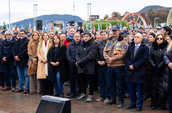 USHUAIA.- El Gobernador de Tierra del Fuego AIAS, Gustavo Melella, encabezó el Acto Central por el “44° Aniversario del Día del Veterano y de los Caídos en la Guerra de Malvinas” que se desarrolló en la Plaza Islas Malvinas de la ciudad de Ushuaia. Lo hizo junto al presidente del Centro de Excombatientes de Malvinas en Ushuaia, Juan Carlos Parodi, al Gobernador de la Provincia de Buenos Aires, Axel Kicillof, al Gobernador de la Provincia de La Rioja, Ricardo Quintela, al Presidente Provisional del Senado de la Nación, Bartolomé Abdala, a la presidenta del superior tribunal de justicia, María del Carmen Battaini, al Intendente de Ushuaia, Walter Vuoto y al Secretario de Malvinas, Antártida, Islas del Atlántico Sur y asuntos internacionales, Andrés Dachary.